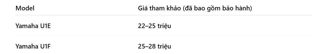 ⭐ 3. Giá Bán Yamaha U1E – U1F Tại Việt Nam (2025)
