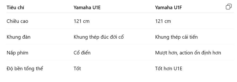 ⭐ 2. So Sánh Chi Tiết Yamaha U1E và U1F