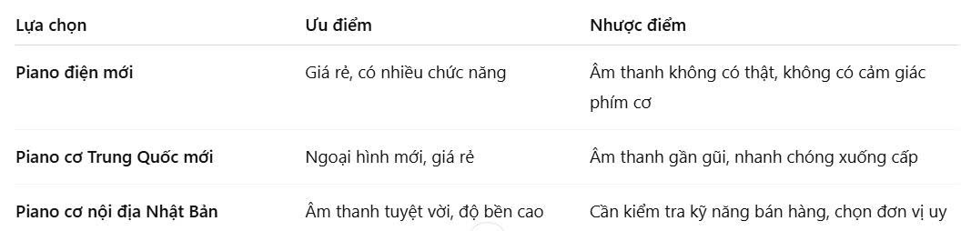 - Có nên chọn cơ sở piano thay vì điện piano trong tầm giá 20–30 triệu không?